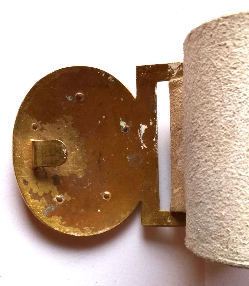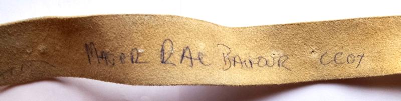 Personalised Cameron Highlanders Dress Belt & Buckle . The two part buckle is in good condition with a section of the gilt finish missing from the rear. The inner surface of the buff coloured belt is inscribed with the recipients details " Major RAC Balfour C Coy"