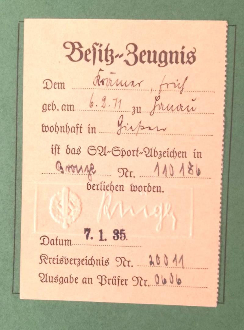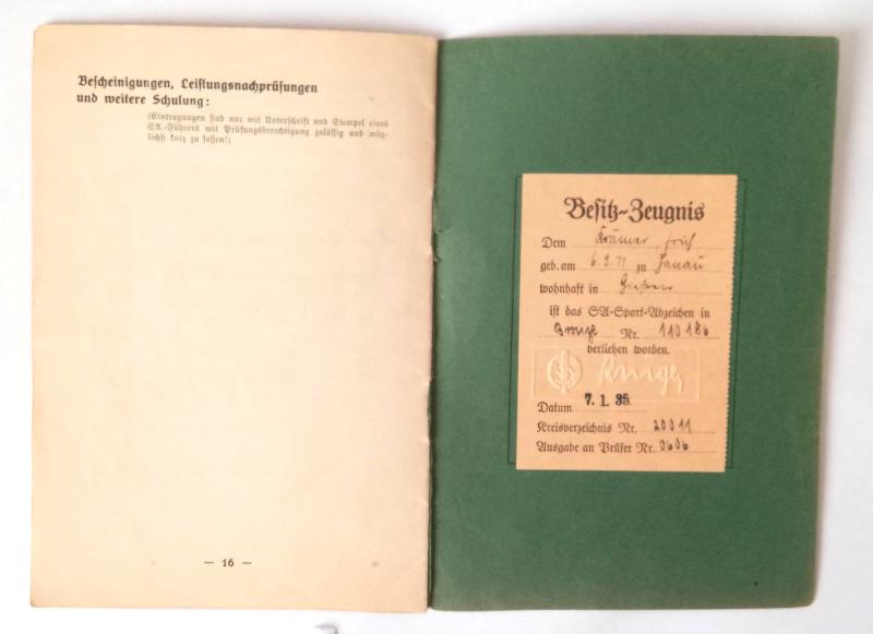 Third Reich Sports Badge Award Booklet.The book is in good condition although the back cover is held in place by only one staple Its well filled out with photographed uniformed recipient