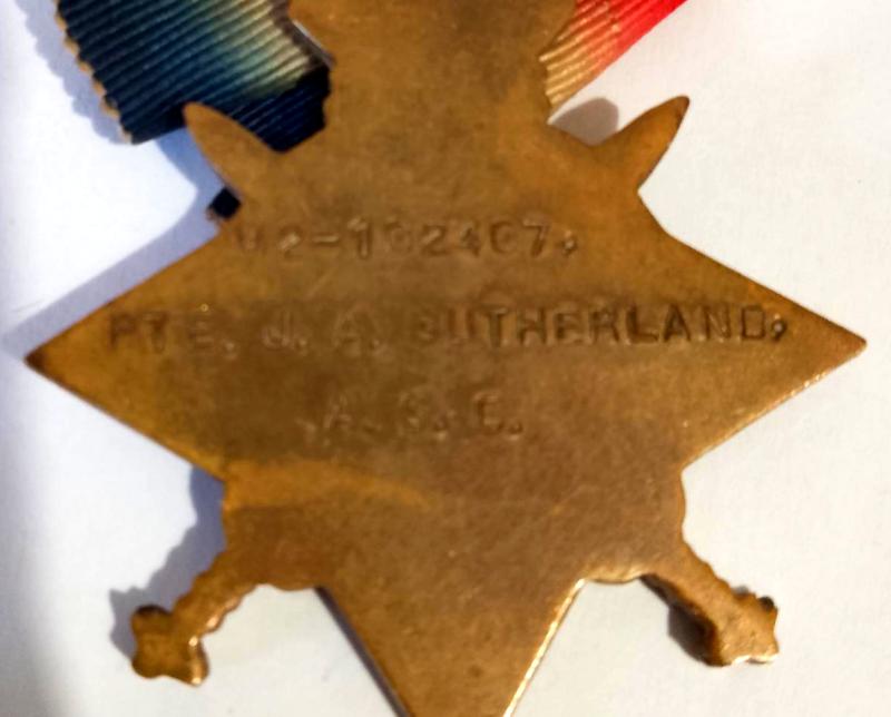 WW1 Star to the A.S.C correctly impressed to the recipient : "M2-102407 PTE J.A.SUTHERLAND A.S.C" complete with original ribbon