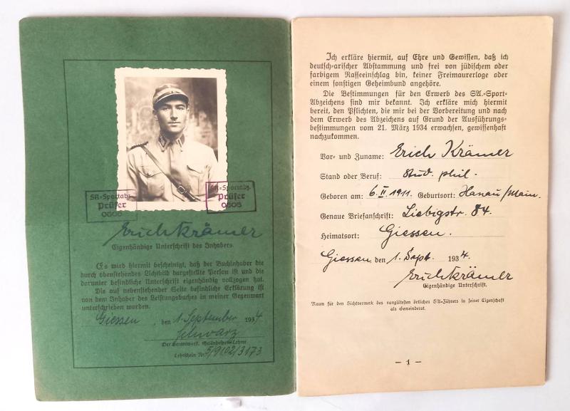 Third Reich Sports Badge Award Booklet.The book is in good condition although the back cover is held in place by only one staple Its well filled out with photographed uniformed recipient