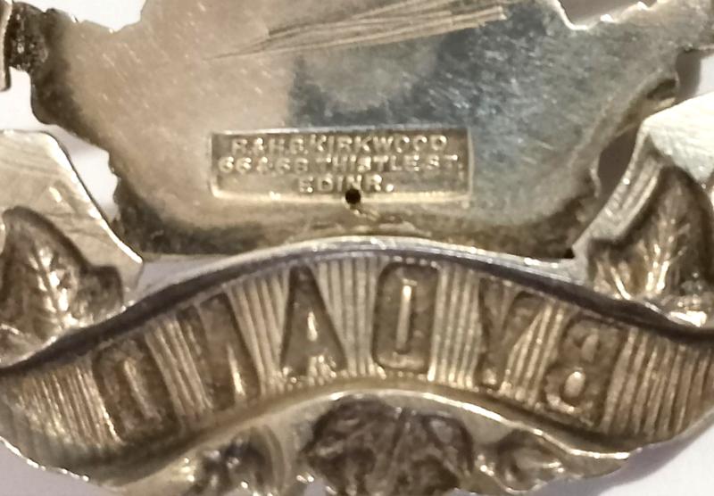 Fine example of a Victorian Gordon highlanders Officers Cap badge by the well known Military Jeweller / Retailer "Kirkwood" of Edinburgh