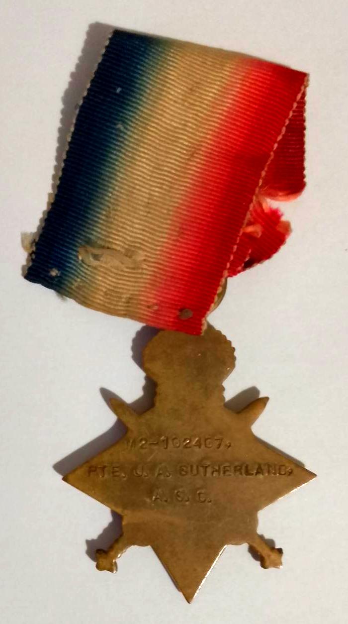 WW1 Star to the A.S.C correctly impressed to the recipient : "M2-102407 PTE J.A.SUTHERLAND A.S.C" complete with original ribbon